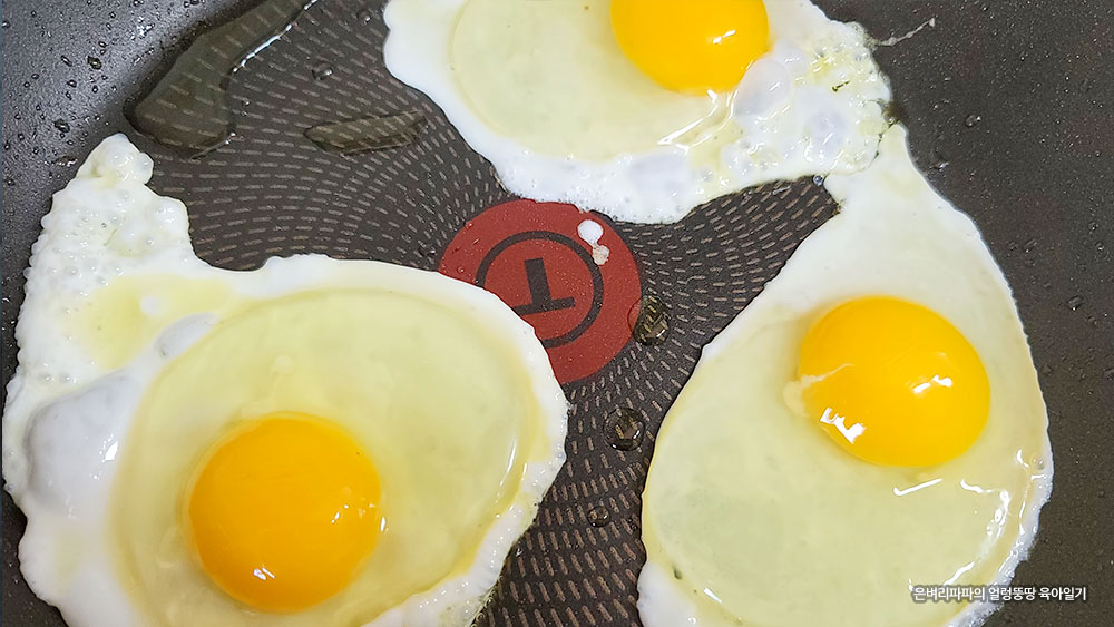 만두까지 곁들이고, 마지막으로 계란 프라이를 반숙으로 올려냅니다.