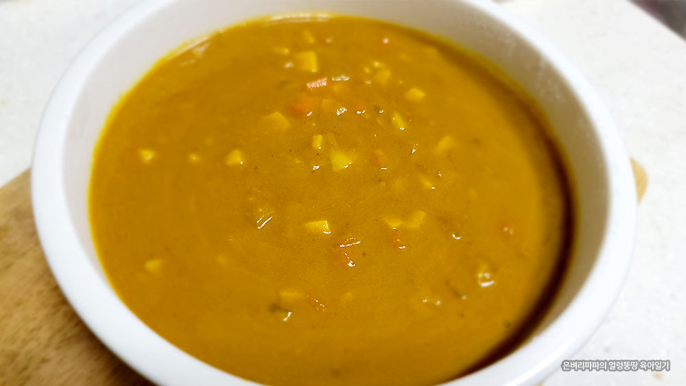 전날 아이 엄마가 카레를 만들 때, 들어가는 채소를 아주 잘게 썰어 넣었더라고요.