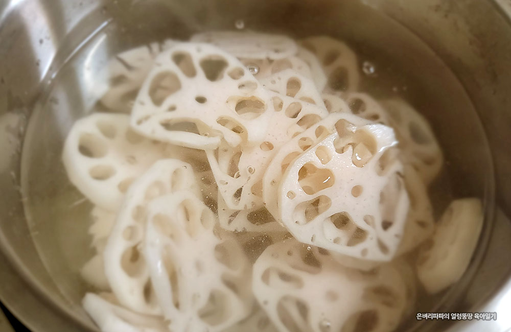 그렇다 보니 연근은 한번 데쳐서 사용하는 게 좋아요.