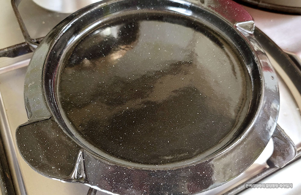 가스레인지에 무쇠 접시를 올려 살짝 달구어 줍니다.