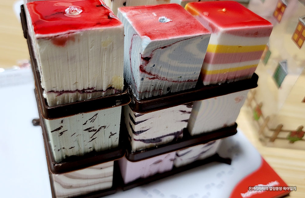 포장지를 벗겨내니, 각각의 큐브 아이스크림이 아주 먹음직스럽네요.