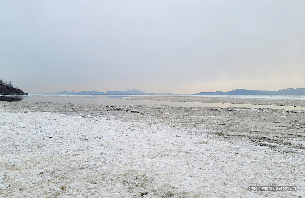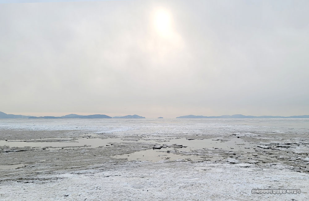 그러나... 갯벌이 꽝꽝 얼어버린 이색적인 풍경을 지나...