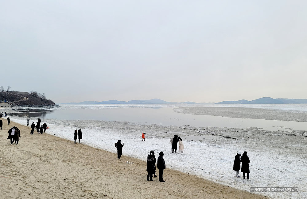 파도 대신 눈과 얼음이 가득한 해수욕장 풍경~ 동막해수욕장~!