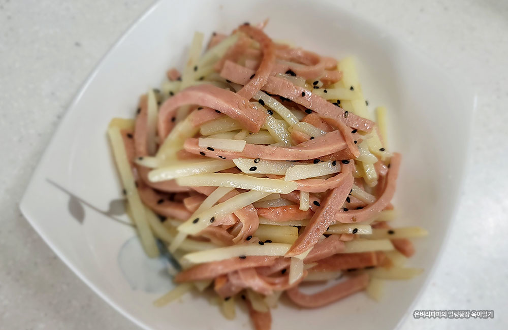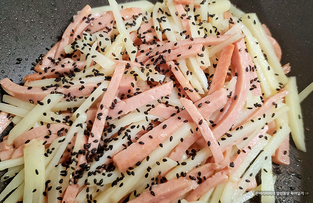 재료 : 감자, 깡통 햄, 올리브유, 소금, 검은깨