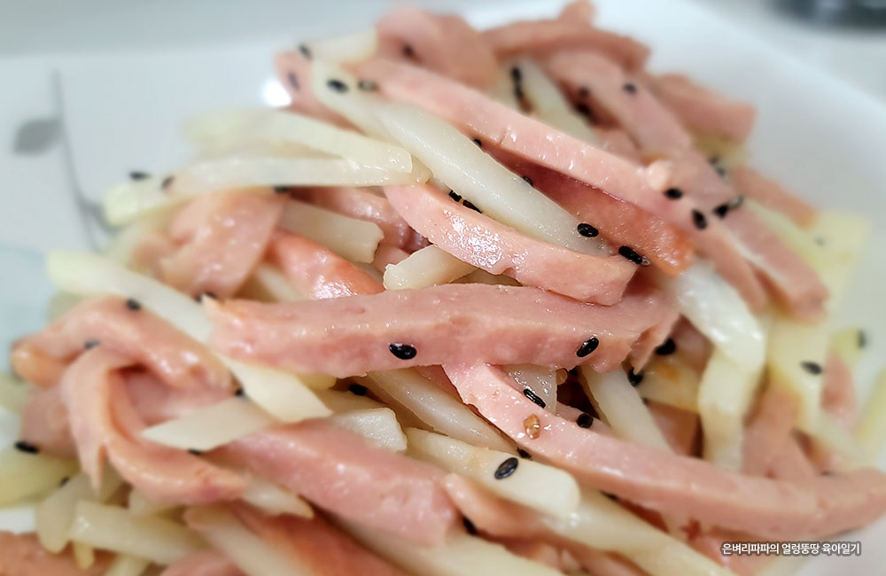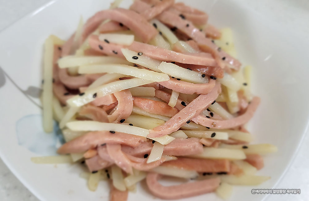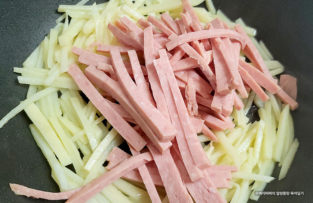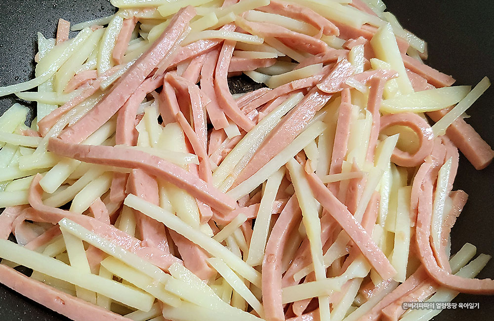 필히 감자를 먼저 익히고 햄을 넣어 주세요.