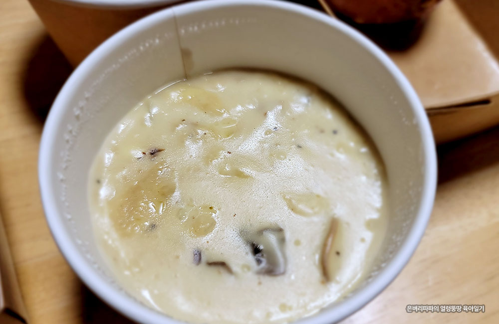 꽤 진한 농도의 양송이 수프도 맛이 좋더라고요.
