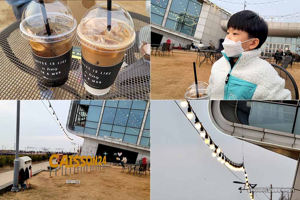 엄마, 아빠는 카페에서 커피를 테이크아웃 하기로 했어요.