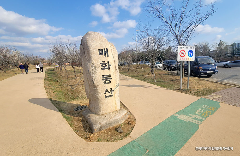 매화동산 표지석을 기준으로 양갈래 매화나무 산책로가 있습니다.