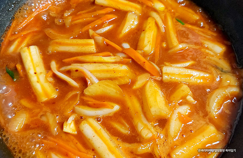 어묵을 넣고, 잘 뒤적이며 국물이 졸아들 때까지 기다리면 완성~