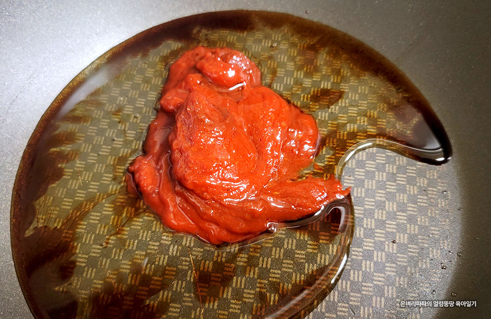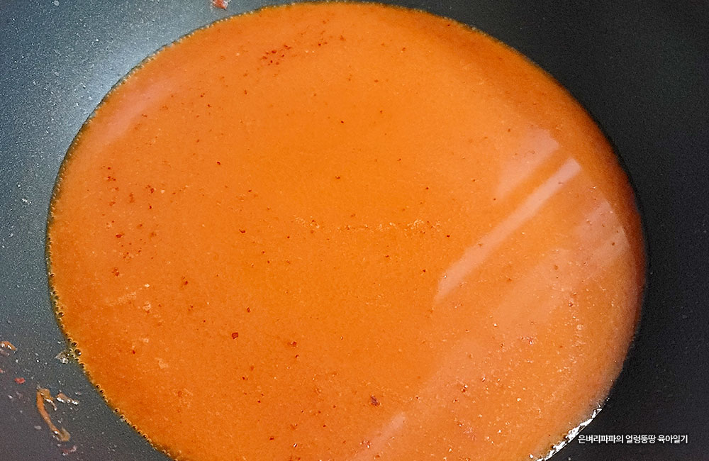 재료 준비가 끝나면 볶음팬에 양념을 만들어 봅니다.