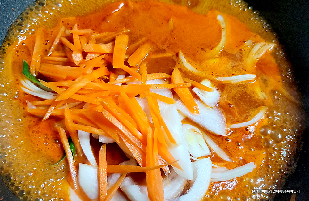 모든 양념이 고루 잘 섞여 끓기 시작하면,
