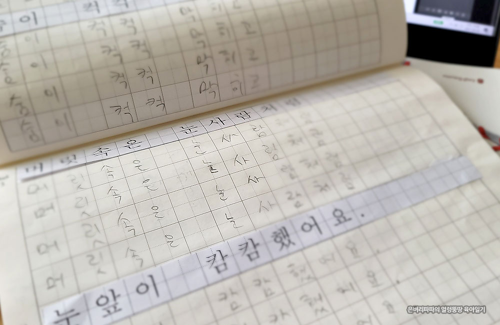 누나의 도움으로 받아쓰기를 열심히 했던 것 같아요.