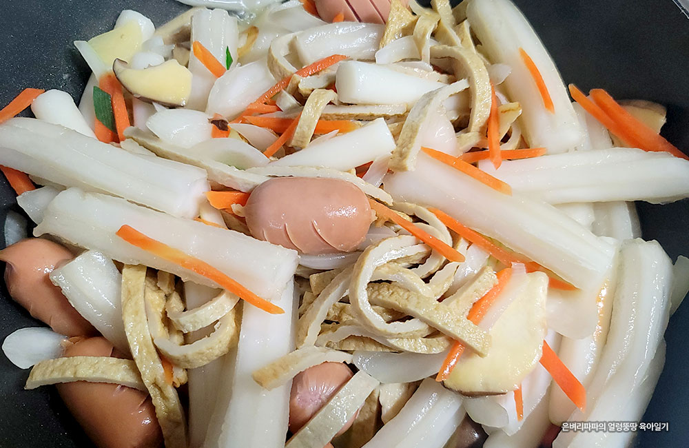 어묵은 국수가락처럼 길게 썰어 준비했어요.