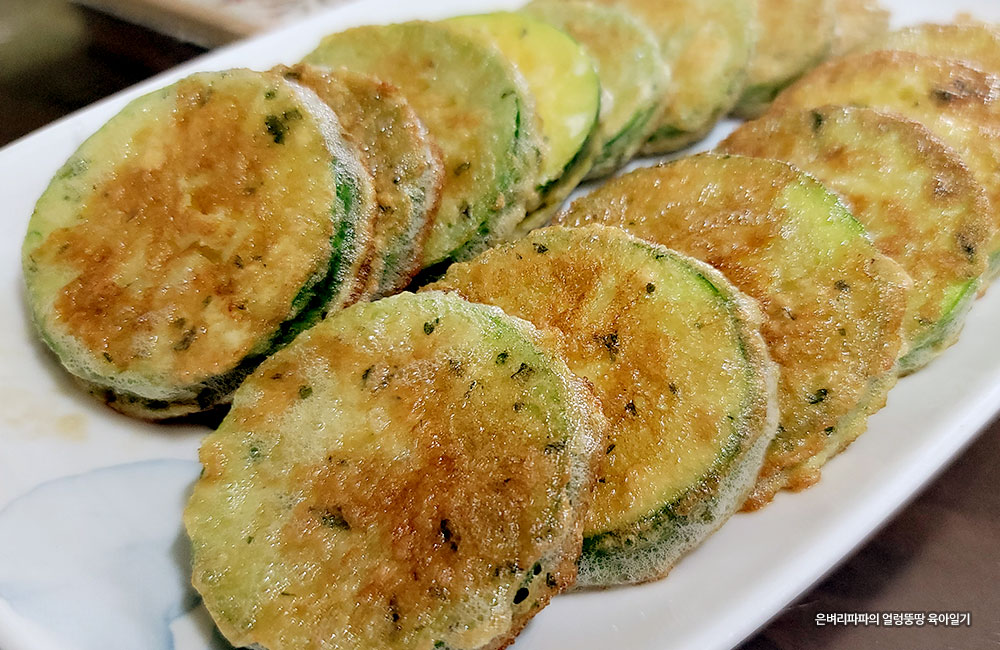 비 오는 주말 아침~ 느긋하게 아침 겸 점심으로 애호박전을 만들었습니다.