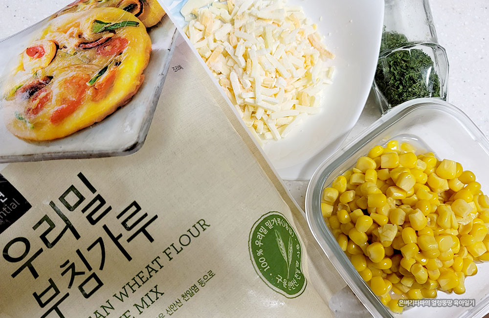 재료 : 캔 옥수수, 모차렐라 치즈, 파슬리가루, 부침가루, 올리브유