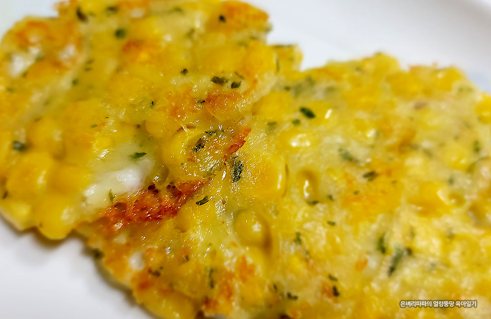 캔 옥수수와 치즈의 풍미를 한꺼번에 느낄 수 있는 옥수수치즈전입니다.