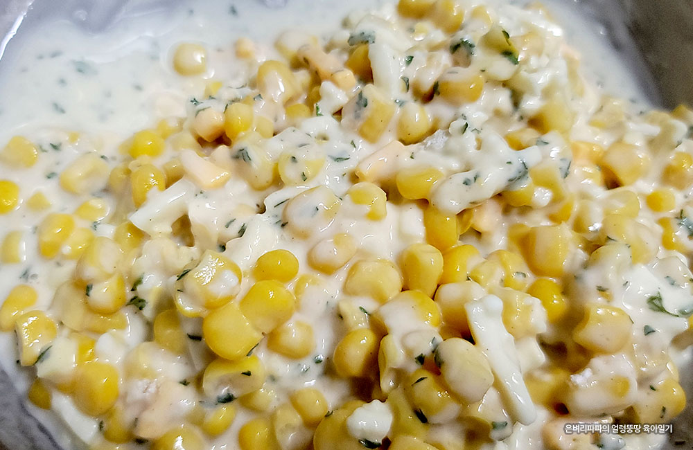 딸아이의 요청으로 버터에 옥수수와 치즈를 넣어 콘 옥수수를 종종 만들어 먹었는데...