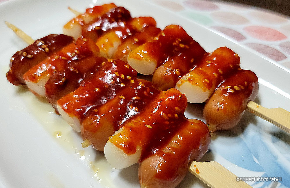 대신 달달한 데리야끼소스가 발라진 소떡소떡을 집어 들고 아주 맛있게 먹습니다.