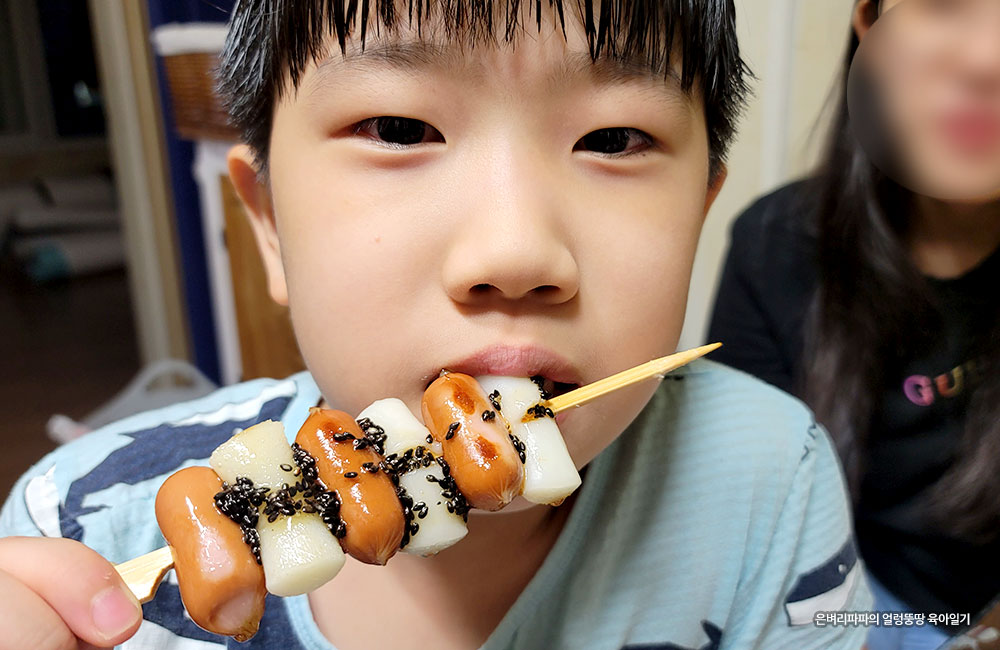 딸아이는 고추장맛이 강하다는 평을 하고는 한 꼬지 뚝딱 먹어 치웠어요.
