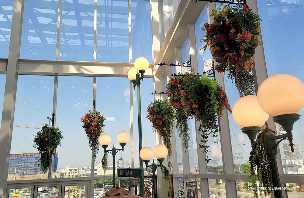카페 1층 중앙홀은 2층까지 층고가 트여 있어 시원시원합니다.