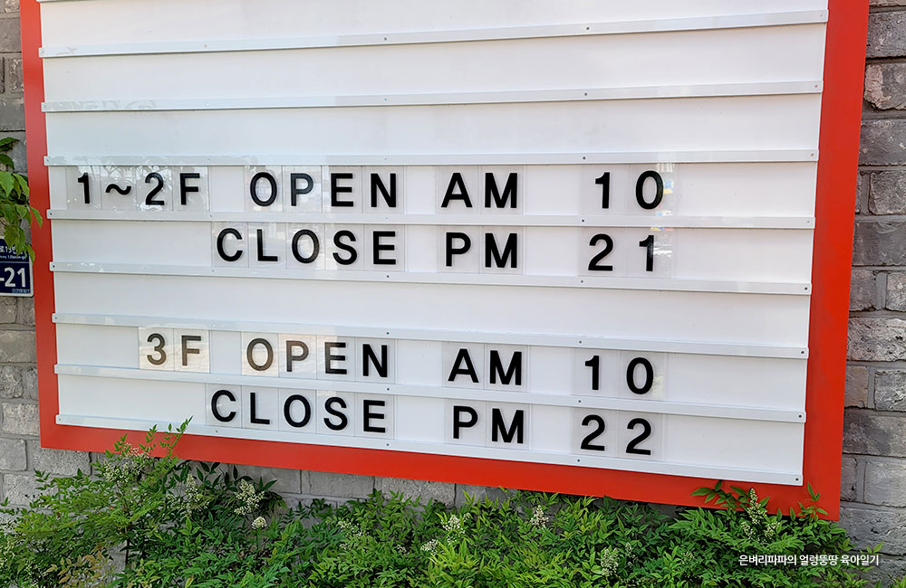 정문에는 카페의 오픈, 마감시간을 안내하고 있습니다.