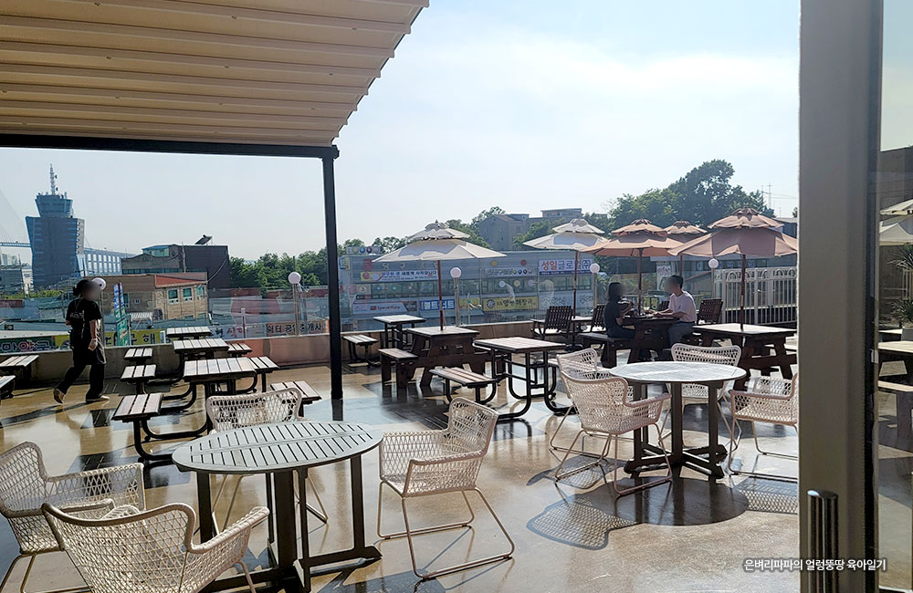 3층의 야외 테라스는 햇빛이 강하게 드리우는 좌석만 비어 있었어요. ㅠ.ㅠ