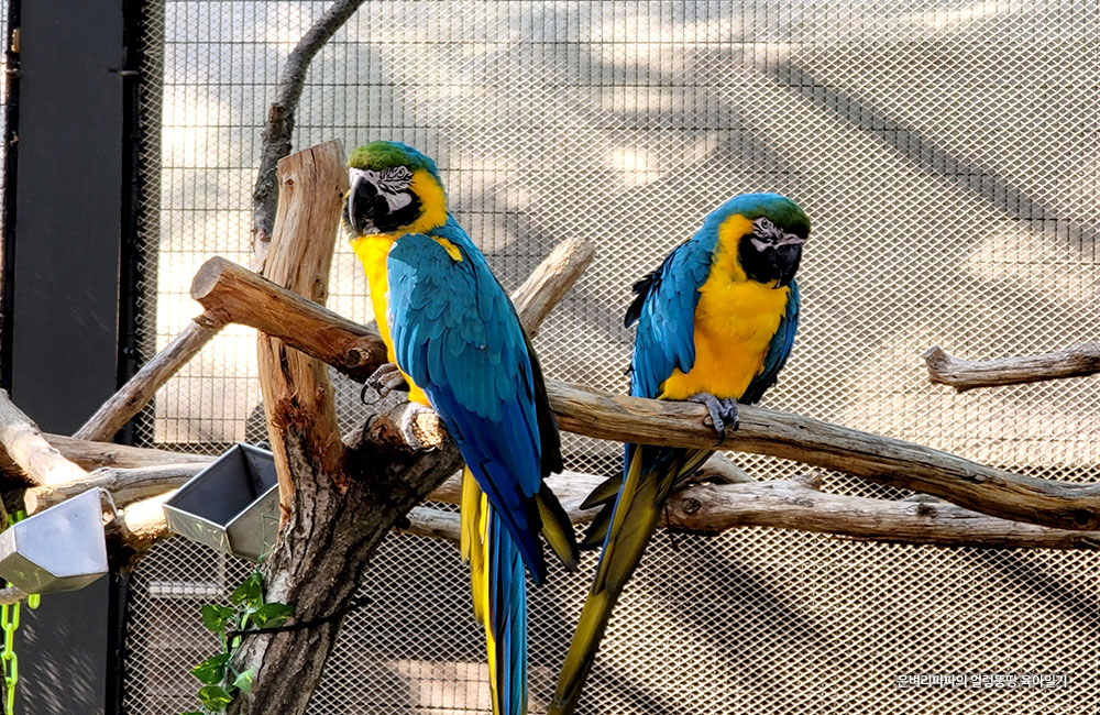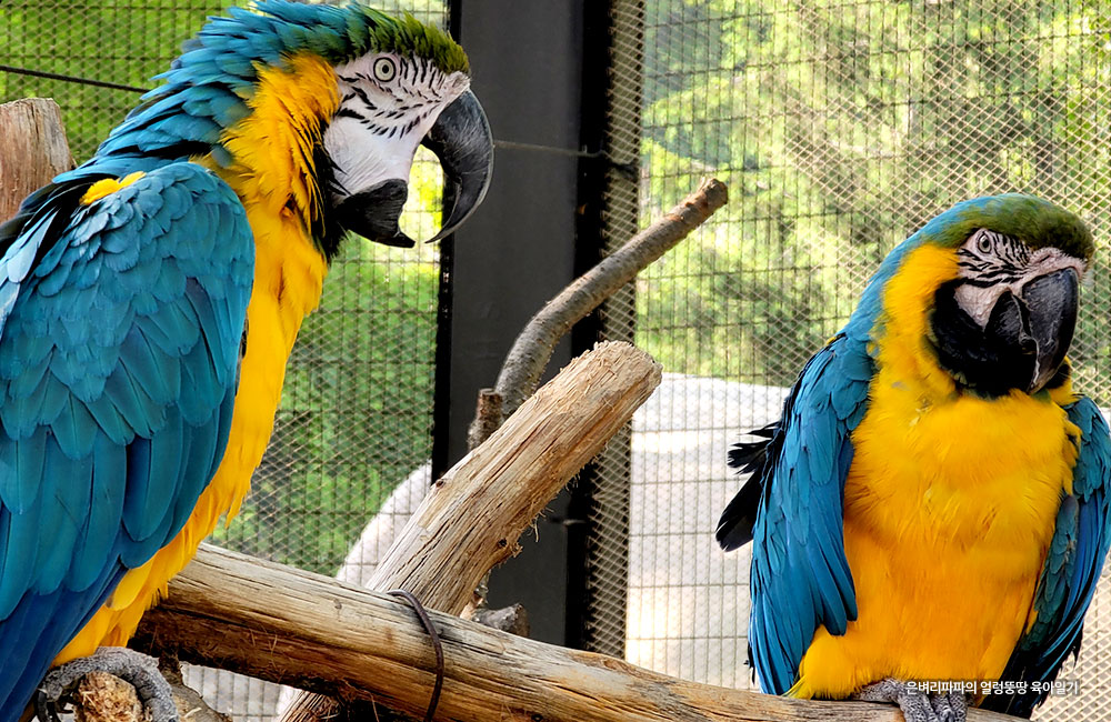 누가 관람객인지... 덩치 큰 앵무들은 관람객들을 구경하는 모습이기도 했어요.ㅋ