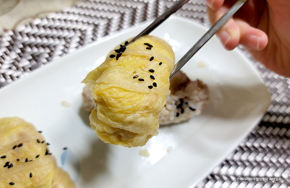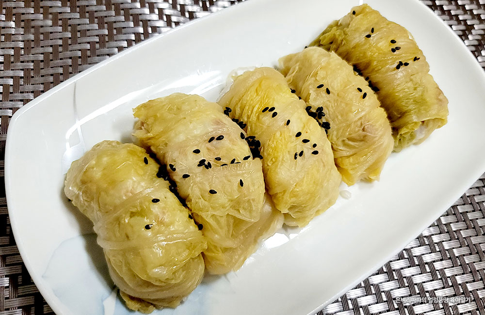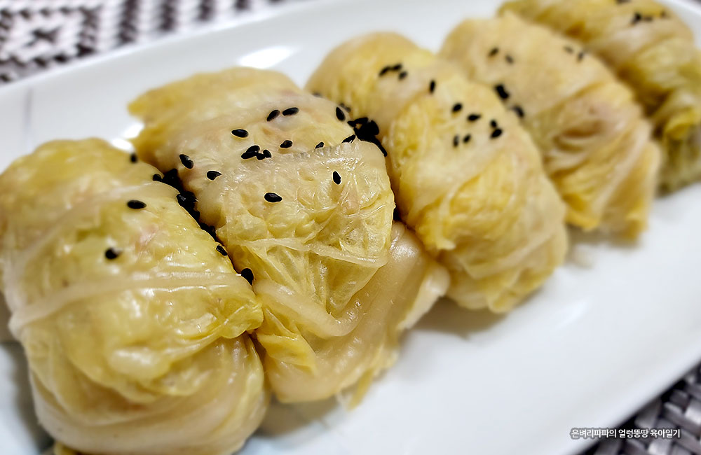 부드러운 배춧잎을 이용해 김밥 말듯 돌돌~ 말아줄 거예요.