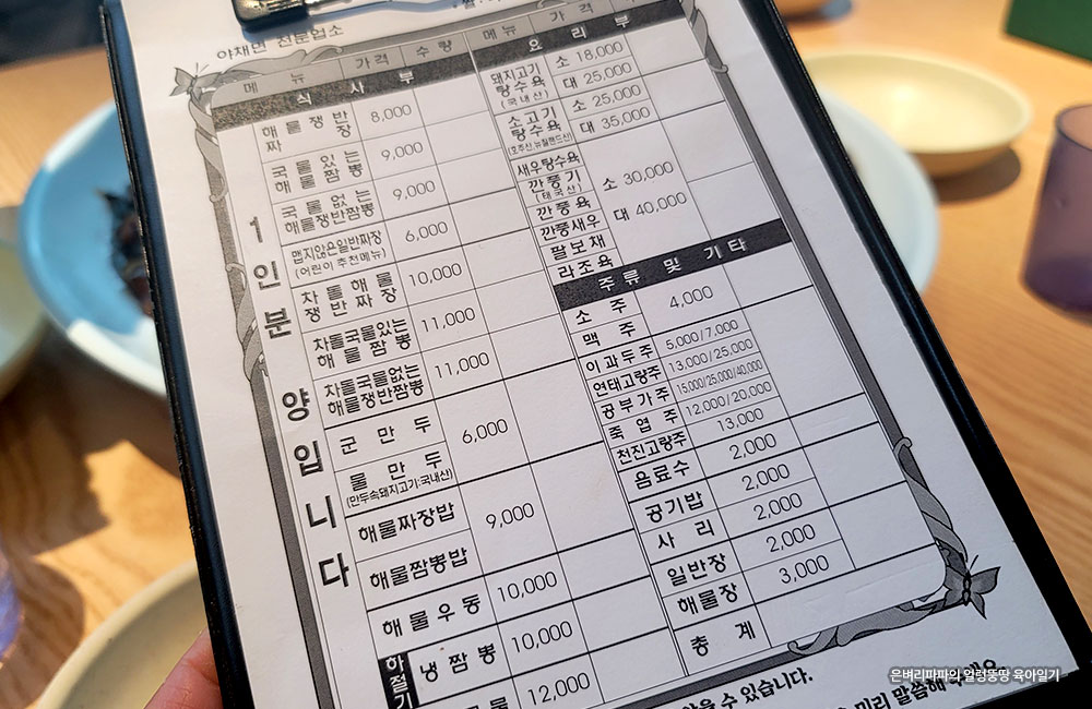 특이하게도 A4 사이즈의 주문표가 테이블에 놓여 있군요.