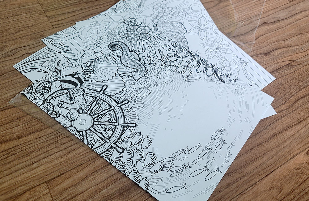 그리고, 바로 채색을 할 수 있도록 밑그림이 따로 들어 있어요.