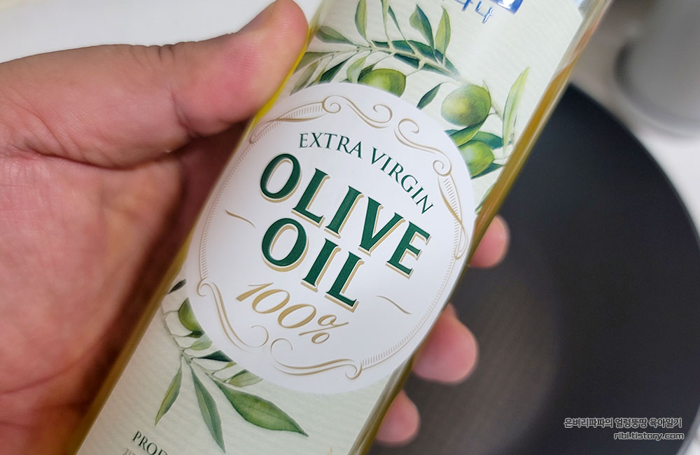 2 봉지를 뜯어 올리브유를 넉넉히 두르고 냉동 그대로 볶아주었습니다.