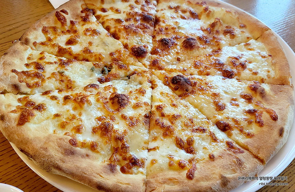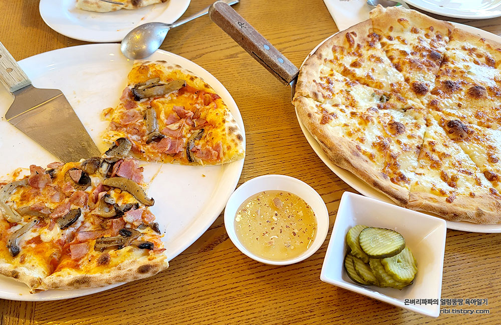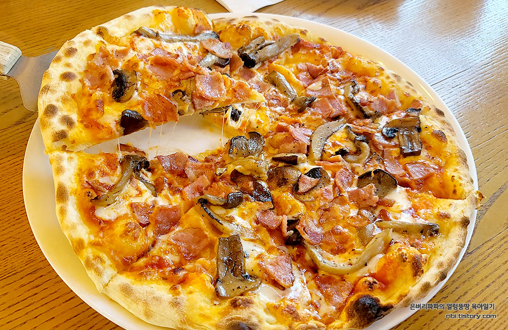 그리고 얼마 지나지 않아 딸아이가 좋아하는, 추가한 피자가 나오네요.