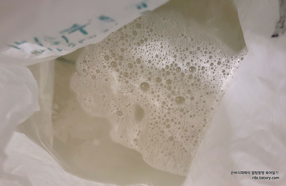 욕실 한편에 그대로 방치해 두고, 두어 시간 뒤 봉투를 열어 상태를 확인해 봅니다.