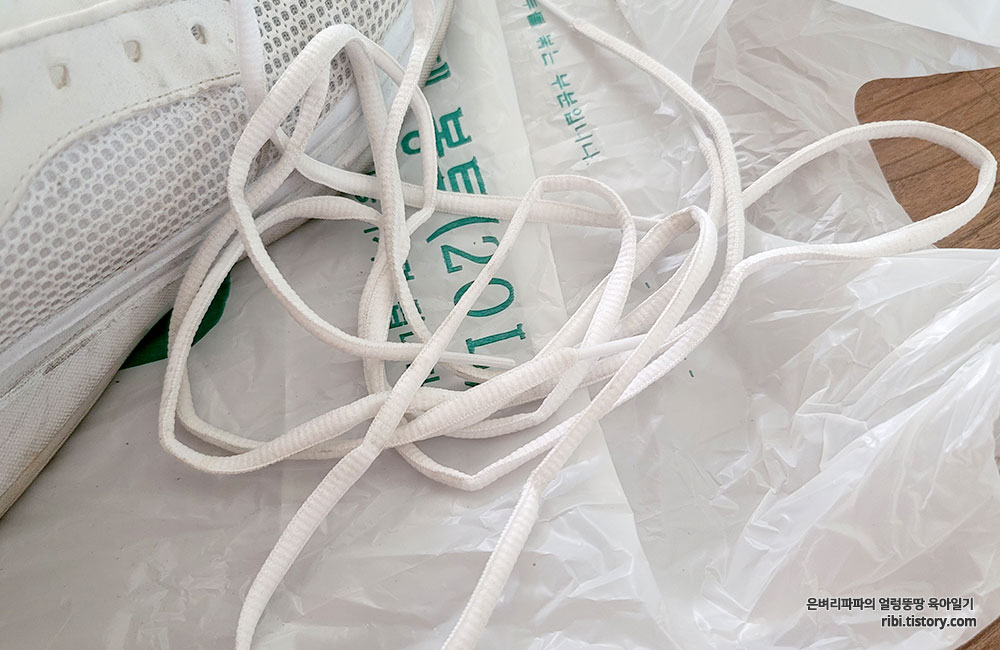 운동화 끈은 따로 손으로 조물조물 세탁하면 됩니다.