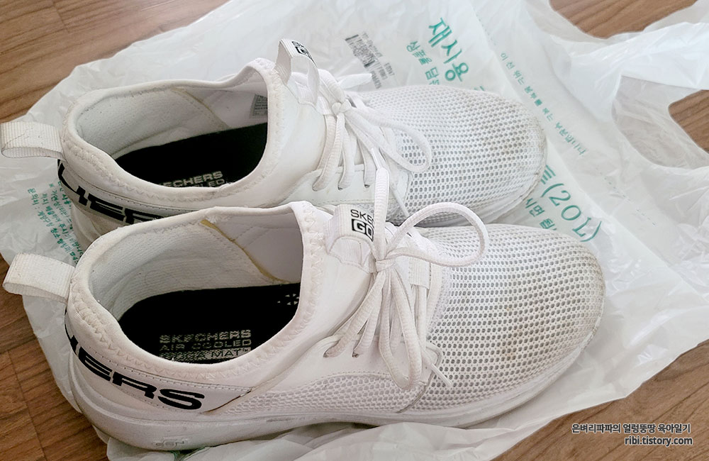 일반 종량제봉투(쓰레기봉투)를 이용한 흰 운동화 세탁법~!
