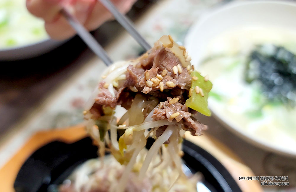 부챗살과 어우러진 숙주나물은 아주 잘 먹습니다.
