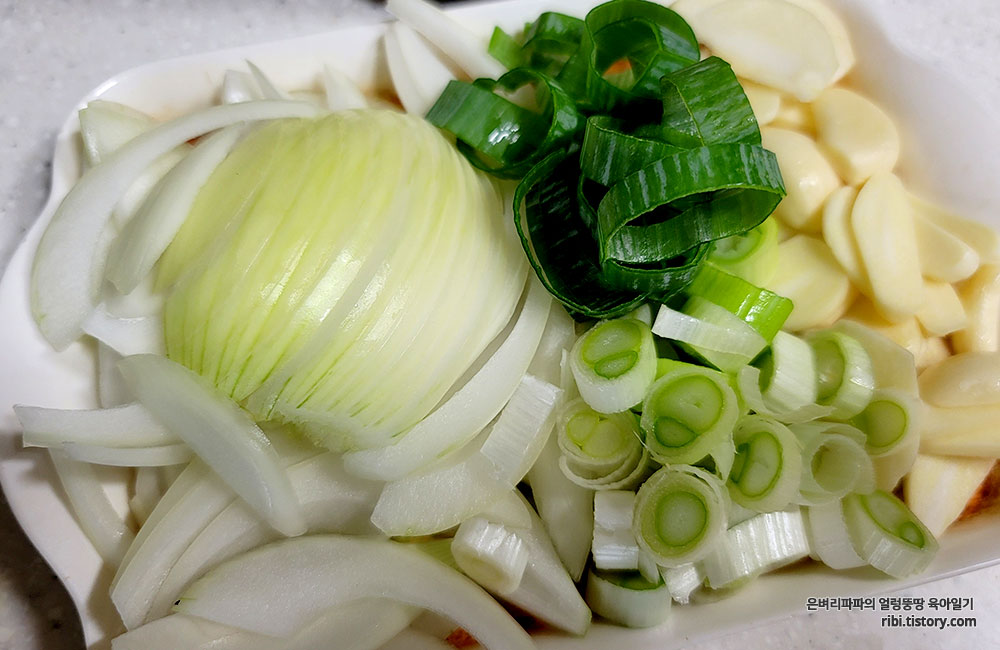 양파 또한 적당한 굵기로 썰어 준비합니다.