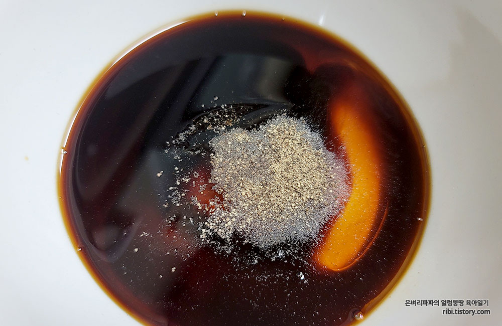 굴소스 2, 데리야끼 소스 1, 간장 0.5, 올리고당 1, 후추 약간