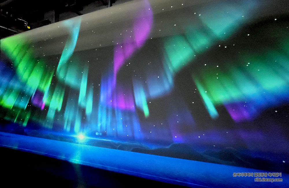 한쪽 벽면을 가득 채우고 있던 밤하늘의 오로라...