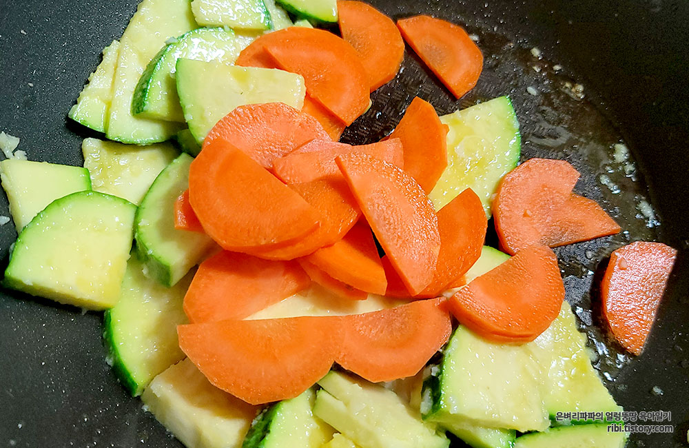 버섯은 호박과 당근 크기에 맞게 적당히 썰어 준비했습니다.