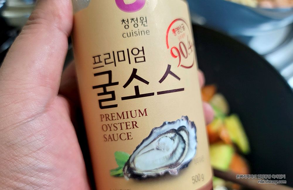 굴소스를 적당히 넣어 다시 뒤적이며 볶아줬어요.