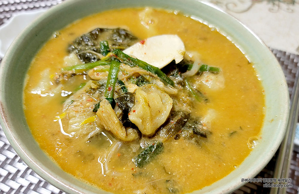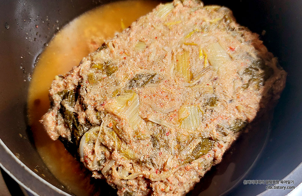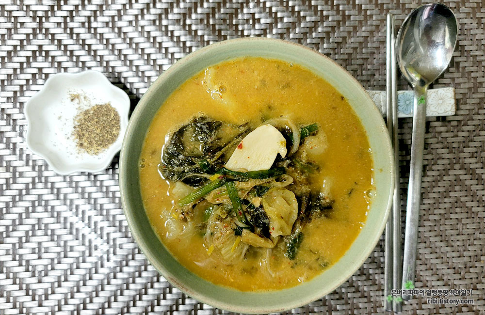 단배추와 숙주를 넣고 된장, 간장, 소금으로만 간을 했다고 하는군요.