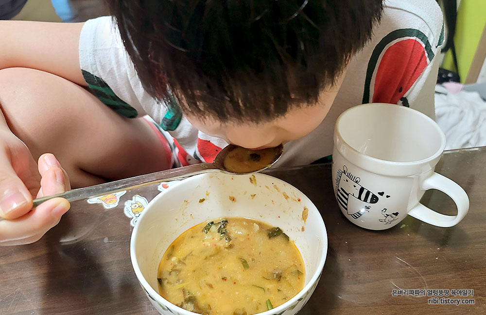 숟가락으로, 젓가락으로... 그리고 수제비까지 아주 맛있게 먹었습니다.