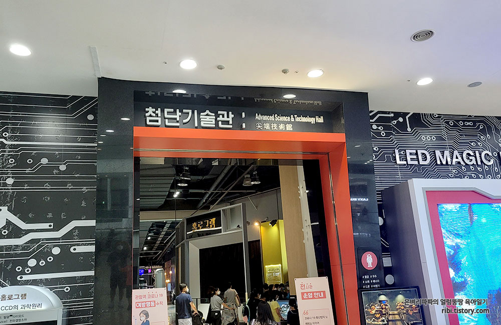 에스컬레이터를 타고 2층에 내린 순간 좌측으로 바로 보이던 첨단기술관입니다.
