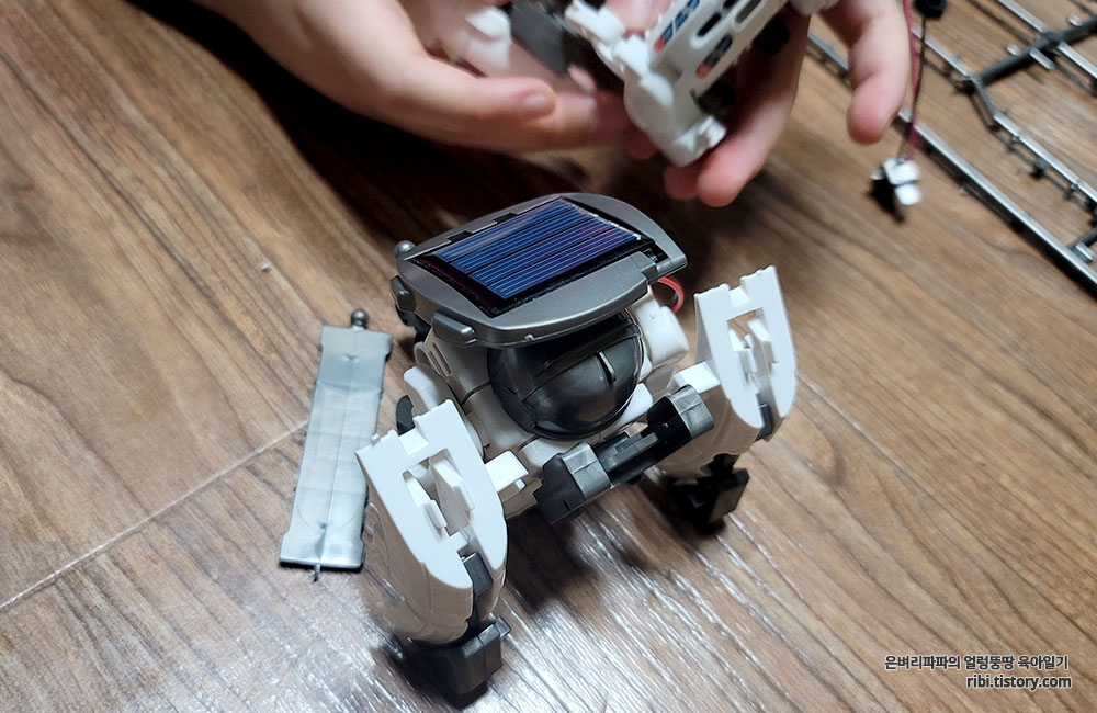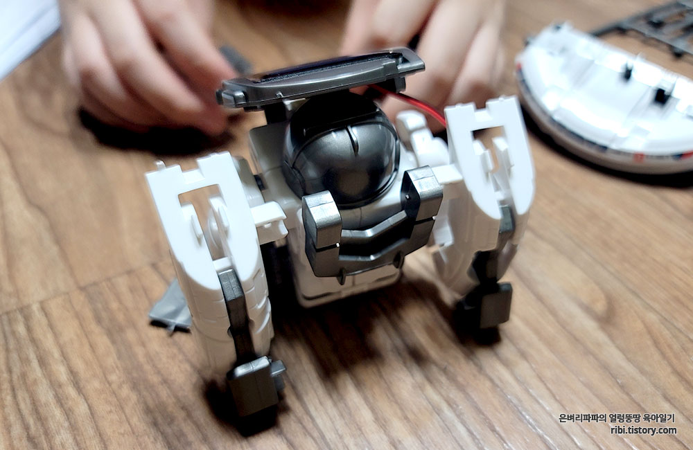 태양열 전지판을 조립할 때는 아빠가 살짝 도와줬습니다.