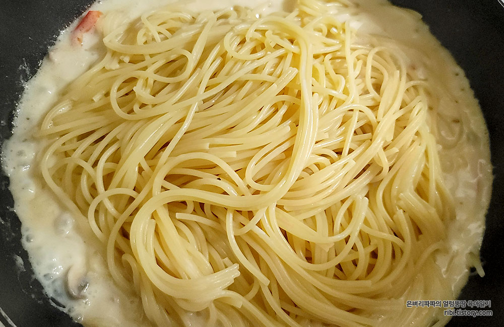 이때, 스파게티면 삶은 면수를 조금 넣어 주세요.^^