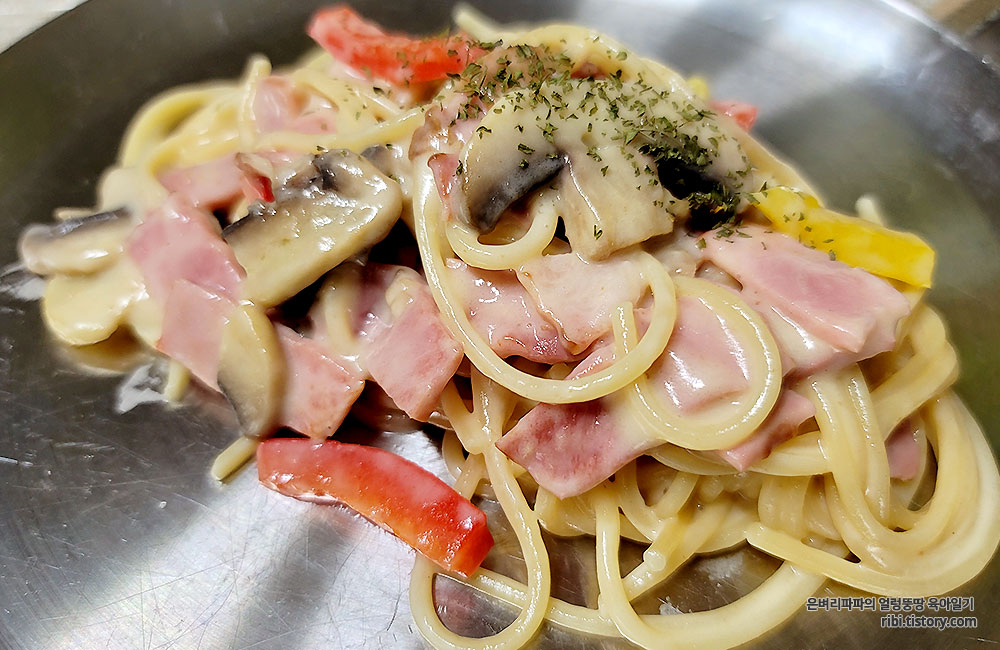 오랜만에 집에서 맛 본 까르보나라 스파게티~