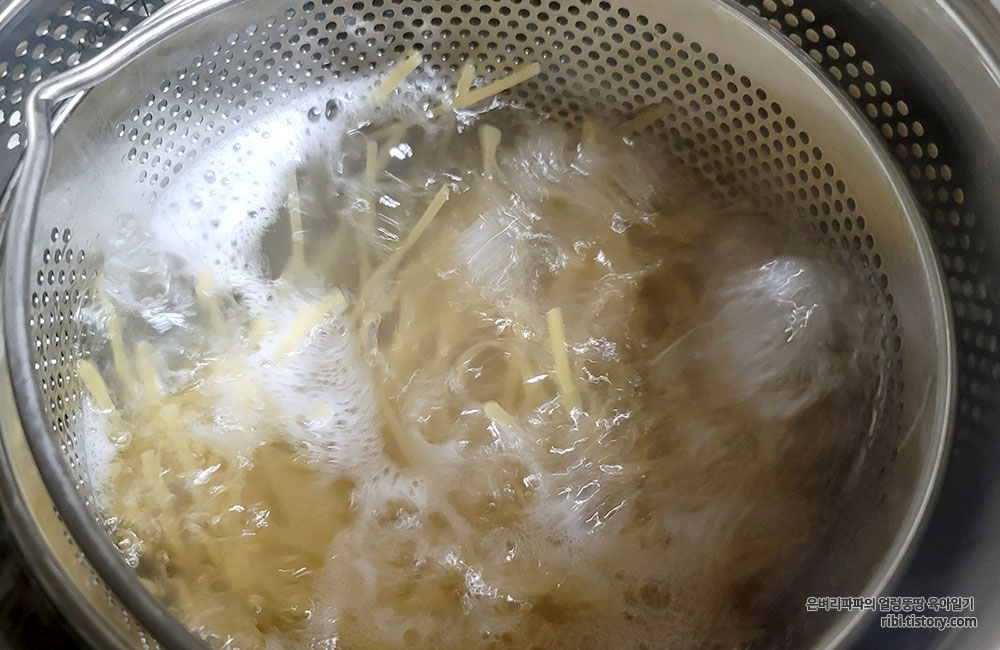 이 과정이 어느 정도 끝날 쯤엔 스파게티면이 완전히 삶아집니다.^^