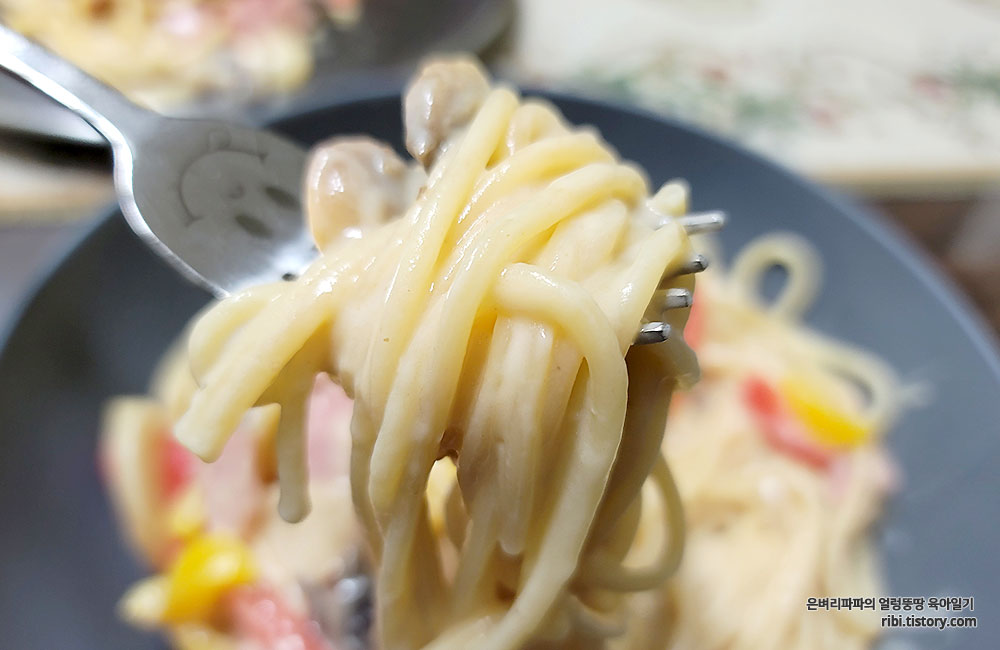 부드러움과 고소함이 매력적인 아빠표 까르보나라 스파게티입니다.