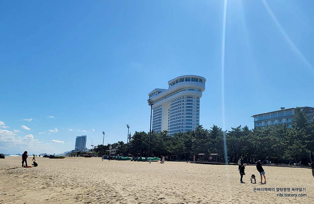 오랜만의 강릉 가족여행 둘째 날 아침에 찾아갔던 경포해수욕장입니다.